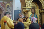 Петр подчеркнул, что встречая ковчег с мощами св. Иоанна, мы встречаем самого владыку – его присутствие на службе весьма реально и ощутимо. Вторая тема, затронутая в проповеди о. Петра – слова Отца, которые мы не всегда замечаем в притче о блудном сыне: «Все Мое – твое».