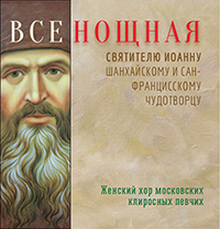 К 50-летию преставления иже во святых отца нашего Иоанна, Шанхайского и Сан-Франисского чудотворца (2 июля 2016) издательством «Русский Пастырь» выпущен новый диск с песнопениями всенощного бдения службы святителю Иоанну. Диск напет в московском ставропигиальном Сретенском монастыре женским составом (семь человек) московских клиросных певчих под управлением Наталии Филипповой. В записи приняли участие ключарь кафедрального собора Всех скорбящих Радости в Сан-Франциско, протоиерей Петр Перекрестов, иеродиакон Сретенского монастыря о. Серафим (Чернышук) и монашеский хор клира этой обители. На записи также представлен колокольный звон московской Даниловский обители. Запись и выпуск диска стали возможными благодаря щедрой поддержке В. Ершова. Диск можно заказать в книжном магазине кафедрального собора в Сан-Франциско: +1 (888) 295-5290; e-mail: nadia@hvcbookstore.com; hvcbookstore.com.