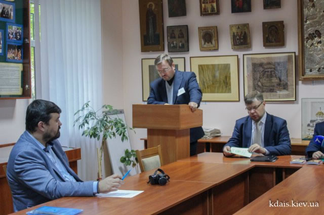 Открывая круглый стол, его участников от имени ректора Киевских духовных школ и управляющего делами УПЦ митрополита Бориспольского и Броварского Антония поприветствовал первый проректор КДА протоиерей Сергий Ющик.