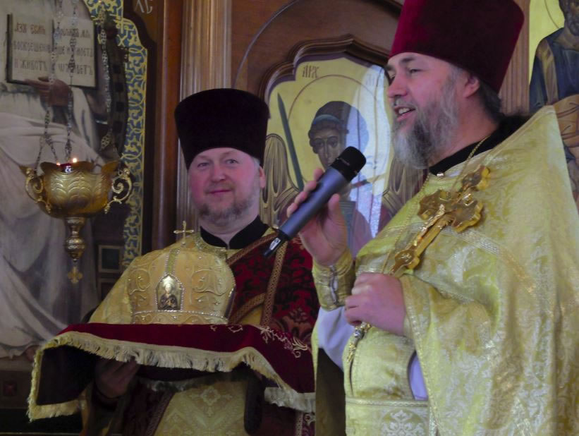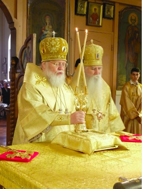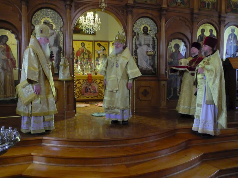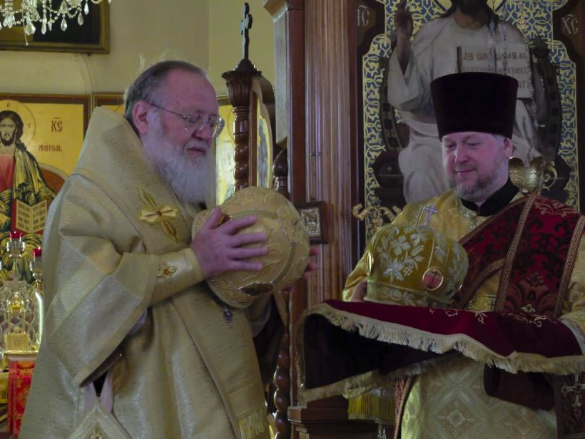 Перед целованием креста со словами приветствия к Высокопреосвященнейшему митрополиту Илариону обратились Преосвященный епископ Георгий и протоиерей Георгий Лапардин, от прихожан и богомольцев преподнесший Его Высокопреосвященству золотую митру по случаю 20-летия его управления на Австралийско-Новозеландской епархией.