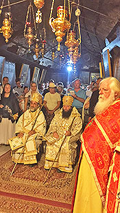 В понедельник, 7 августа, паломники из приходов Русской Зарубежной Церкви в США, Канады и Австралии во главе с епископом Манхэттенским Николаем участвовали в Божественной литургии, которую возглавил митрополит Иоаким, пребывающий на покое иерарх Иерусалимского Патриархата.
