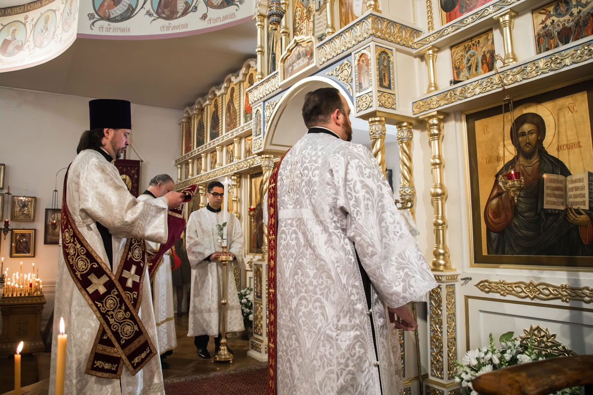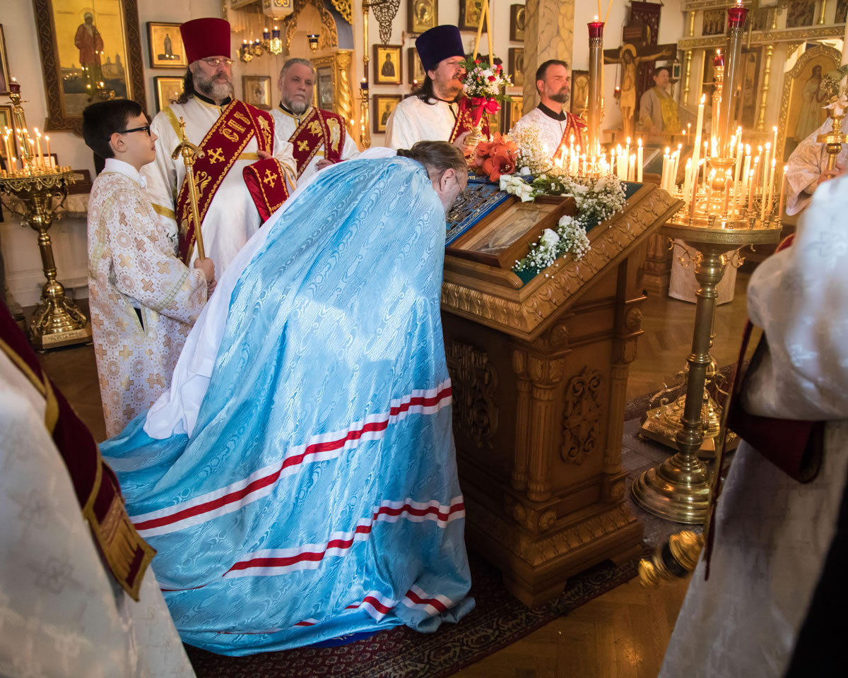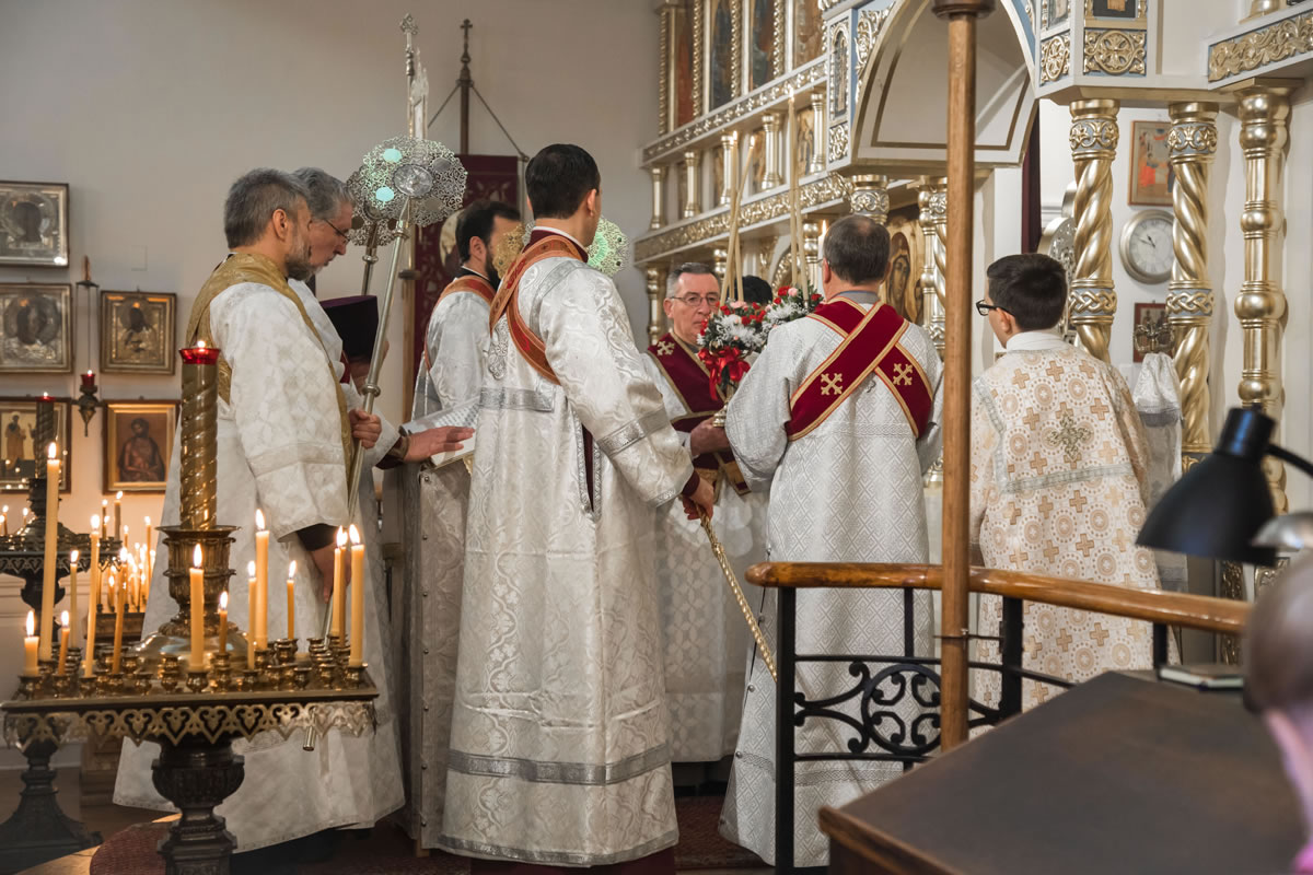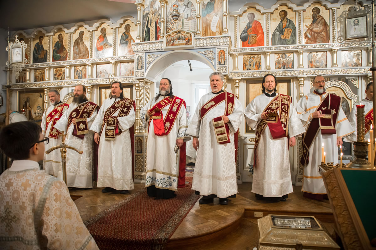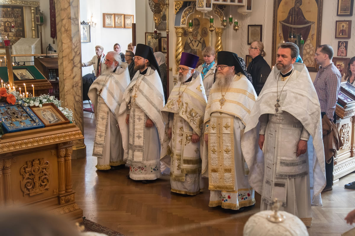 За торжественным богослужением совершалось особое молитвенное поминовение убиенного Государя Императора Александра II по случаю 200-летия со дня его рождения и ныне здравствующего митрополита Восточно-Американского и Нью-Йоркского Илариона, в связи с исполнившимся десятилетием служения Его Высокопреосвященства в достославном звании Первоиерарха Русской Зарубежной Церкви. На запричастном стихе проповедь произнес митрофорный протоиерей Виктор Потапов, настоятель Иоанно-Предтеченского собора в столице США.