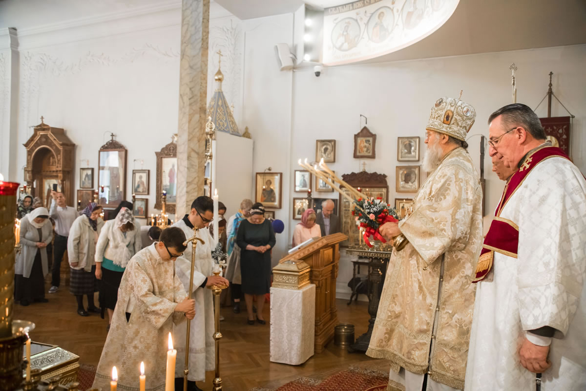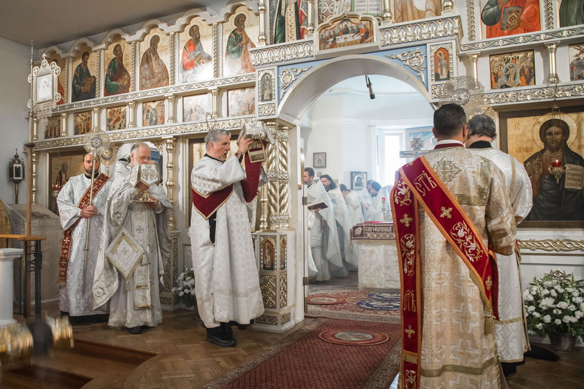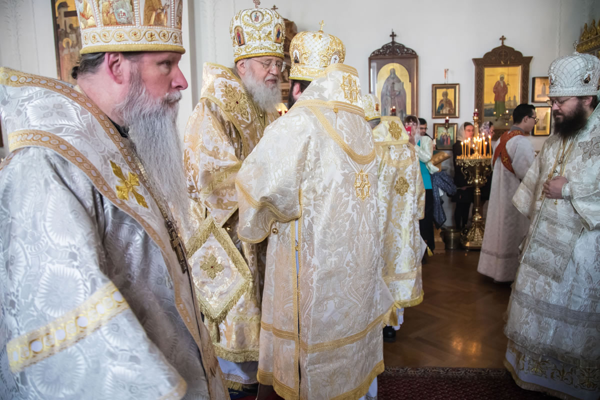 Highslide JSВ воскресенье, 29 апреля, в Неделю 4-ю по Пасхе, митрополит Восточно-Американский и Нью-Йоркский Иларион совершил Божественную литургию в Знаменском Синодальном соборе г. Нью-Йорка. Его Высокопреосвященству сослужили следующие Преосвященные члены Архиерейского Синода: архиепископы Берлинский и Германский Марк, Сан-Францисский и Западно-Американский Кирилл, Монреальский и Канадский Гавриил, епископы Манхэттенский Николай и Сакраментский Ириней, ключарь собора протоиерей Андрей Соммер с клиром, гости в священном сане. Богослужебные песнопения ликующе исполнил Синодальный хор под управлением П.А. Фекулы.