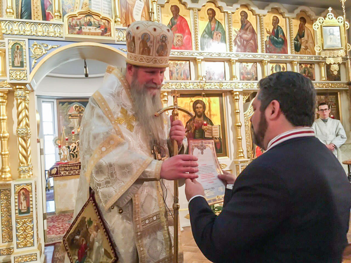 Высокопреосвященнейший Владыка также поздравил казначея Архиерейского Синода иподиакона Георгия Владимировича Шатилова с днем тезоименитства.