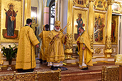 Его Высокопреосвященству сослужили клирики Покровской обители. Пел хор монастыря и воспитанниц детского приюта.