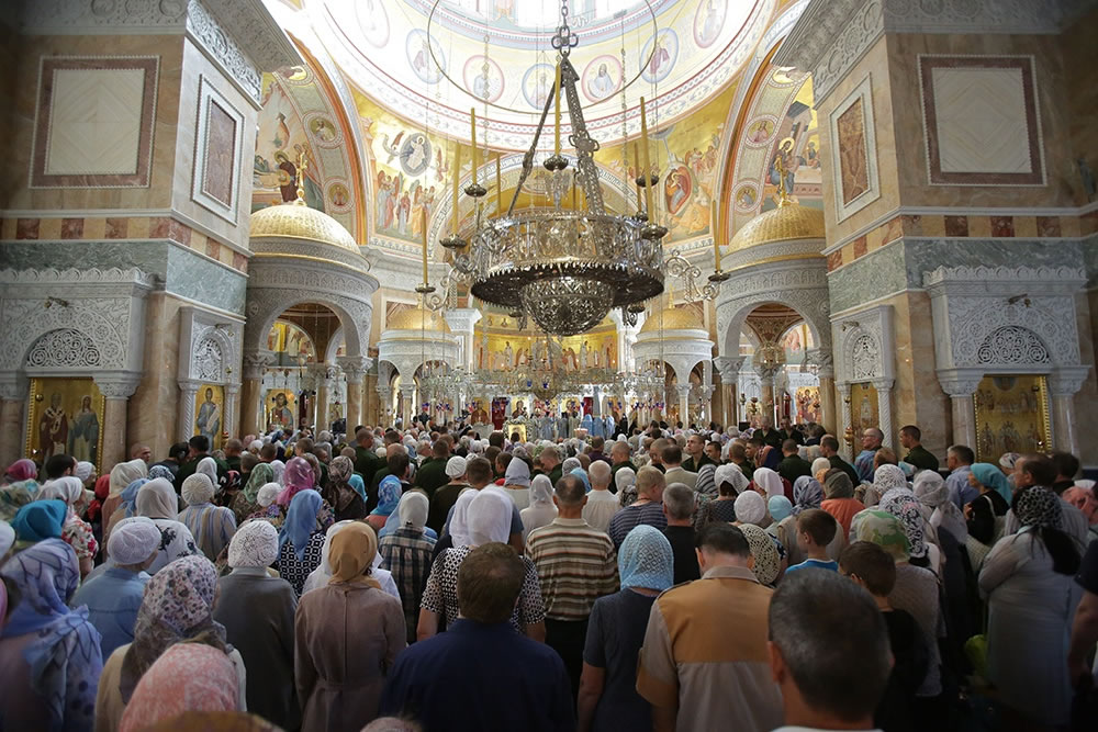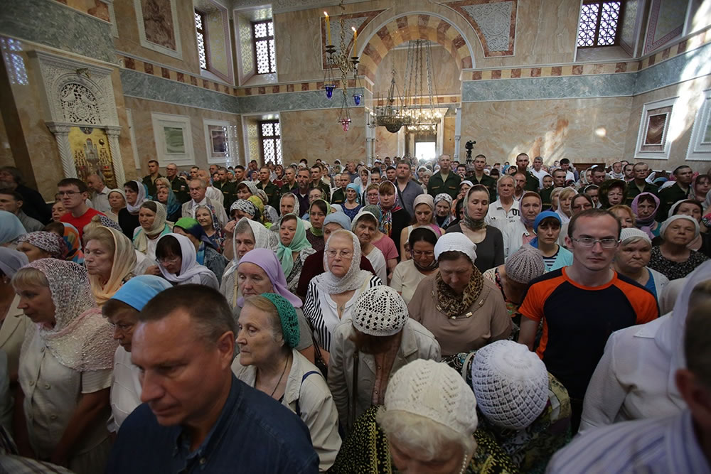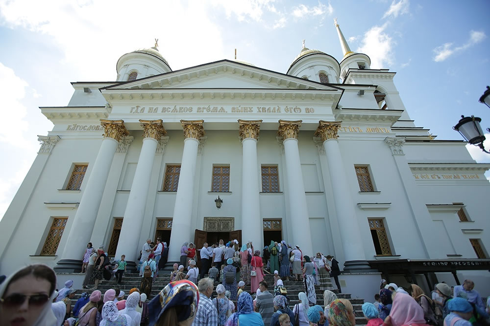 Почтить чудотворный образ Царицы Небесной в Ново-Тихвинский женский монастырь пришли несколько тысяч жителей и гостей города. Многие не вместились в храм и молились за богослужением на ступенях собора и на площадке перед ним. Чтобы причастить всех прихожан, священники вышли к ним на улицу.