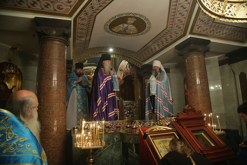 В этот день в храме возносили свои молитвы представители делегации Русской Православной Церкви Заграницей, прибывшие в уральскую столицу на празднование Царских дней во главе с епископом Канберрским Георгием.