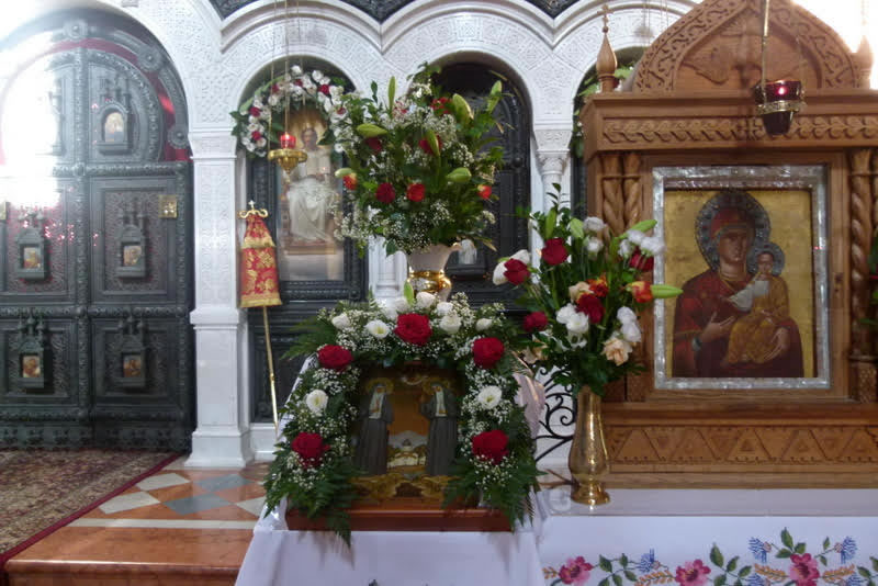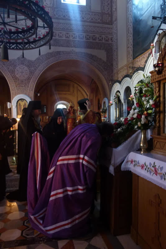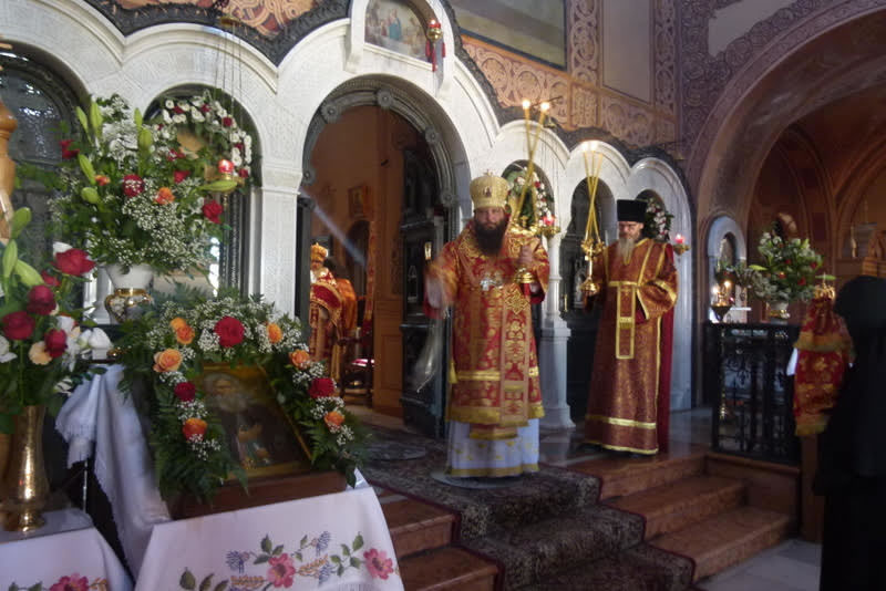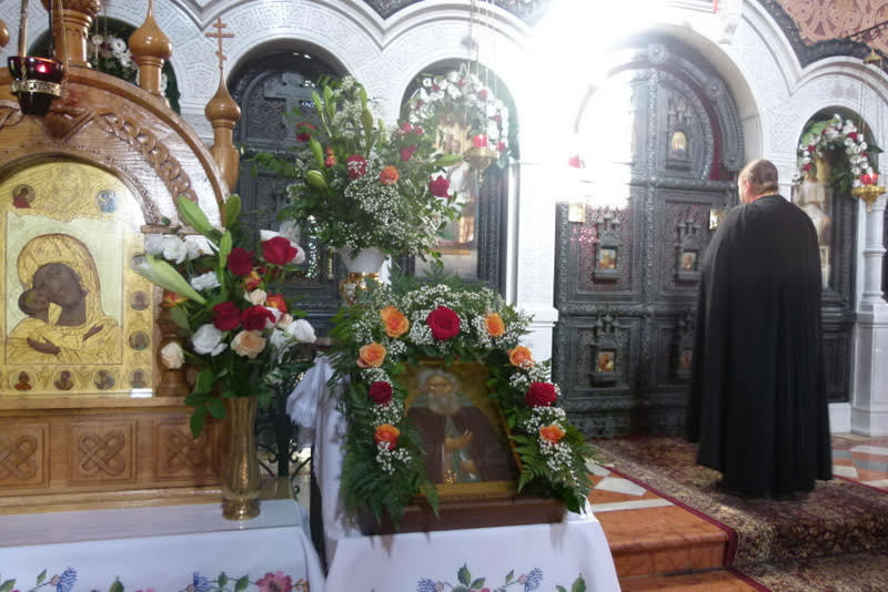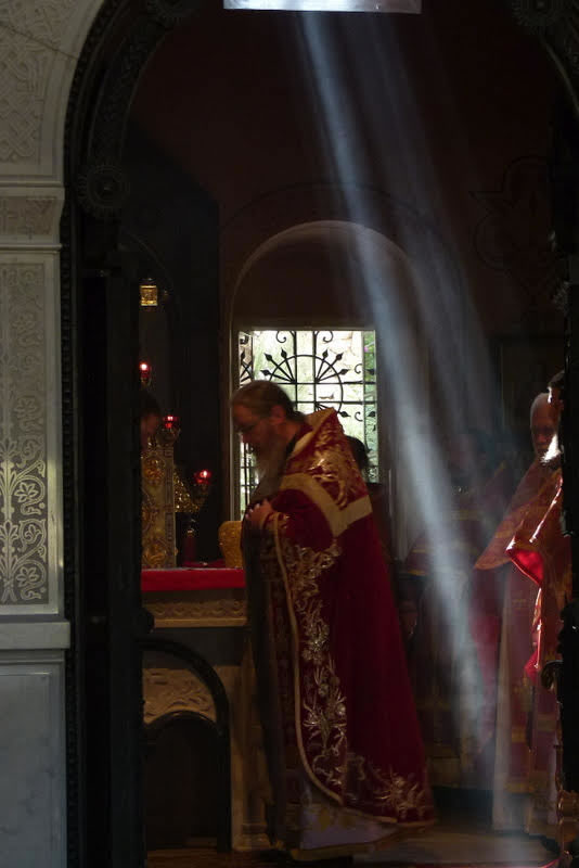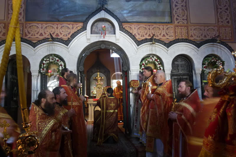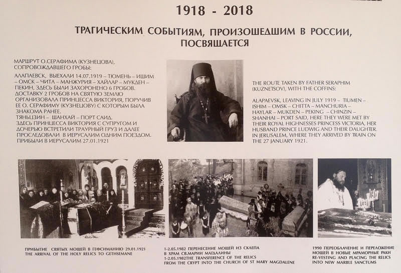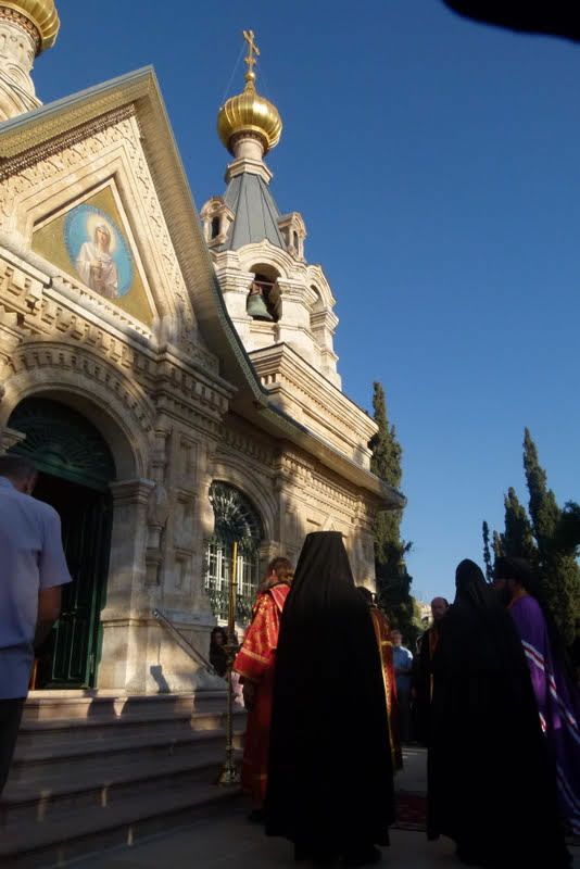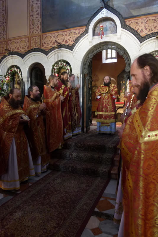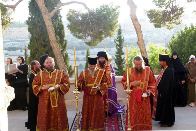 В среду, 18 июля, в день памяти преподобного Сергия, игумена и чудотворца Радонежского, небесного покровителя убиенного Великого князя Сергия Александровича, и в сотую годовщину мученической кончины пострадавших в Алапаевске преподобномучениц Великой княгини Елизаветы Феодоровны, инокини Варвары (Яковлевой) и иже с ними, епископ Манхэттенский Николай, заместитель секретаря Архиерейского Синода, возглавил Божественную литургию, а накануне - Всенощное бдение, в соборном "Царском" храме русской женской обители равноапостольной Марии Магдалины в Гефсимании. Его Преосвященству сослужили архимандрит Роман (Красовский), Начальник Духовной Миссии Русской Зарубежной Церкви в Иерусалиме, многочисленные гости и паломники в священном сане.