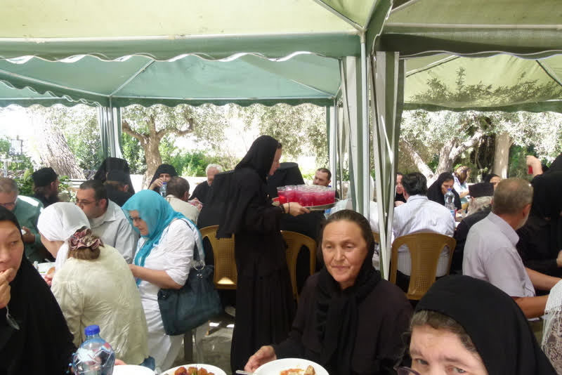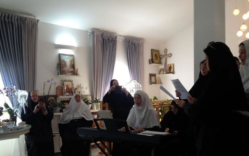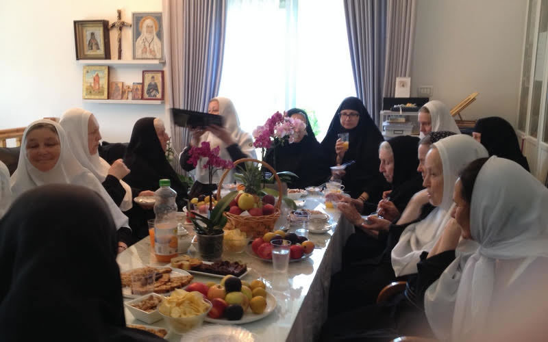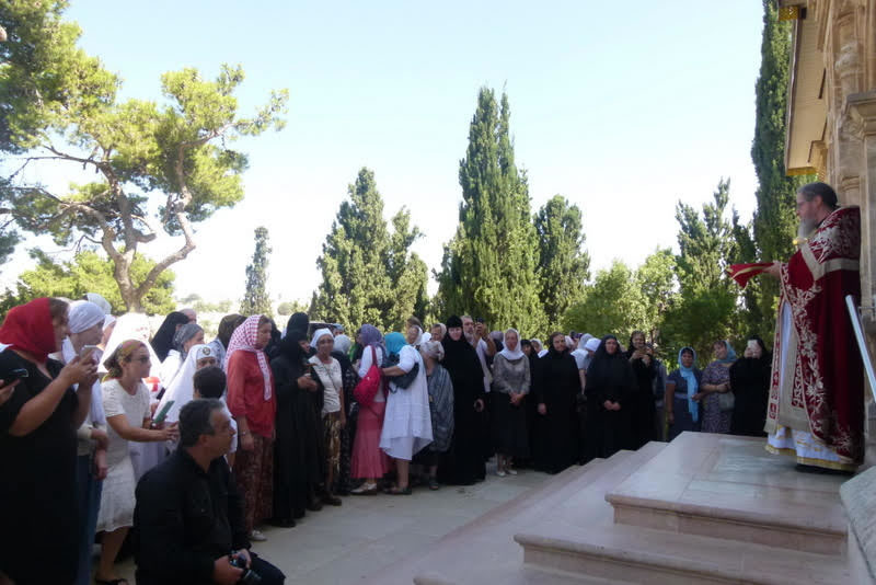 За богослужением молились настоятельница обители игуменья Елизавета (Шмельц) и игуменья Варвара (Новикова), настоятельница Спасо-Вознесенской женской обители на Елеоне. Оба монастыря входят в состав Духовной Миссии Русской Зарубежной Церкви в Иерусалиме.