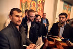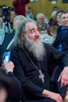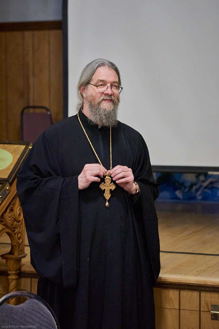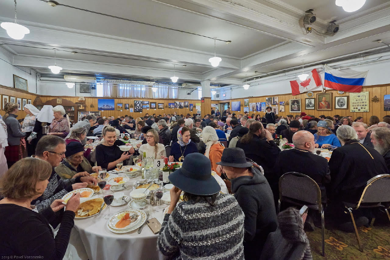 После литургии все желающие спустились в обширный зал на блины, во время которых учащиеся приходской школы предложили прихожанам и гостям художественную программу. С речами выступили прот. Владимир Мальченко, почетный гость праздника, Генконсул Российской Федерации в г. Торонто – Кирилл Сергеевич Михайлов, председатель Русского дома в Торонто Ольга Геннадьевна Гребенчук и прот. Петр Перекрестов. После блинов и перерыва отец Петр провел встречу с прихожанами, рассказав им о новых малоизвестных сведениях из жизни св. Иоанна. Два отрывка из последней книги о. Петра о св. Иоанне,«Пастырь. Учитель. Друг», были прочитаныТатьяной Давидовной Суходольской, а в заключение встречи была показана редкая кинохроника св. Иоанна и службы его прославления.