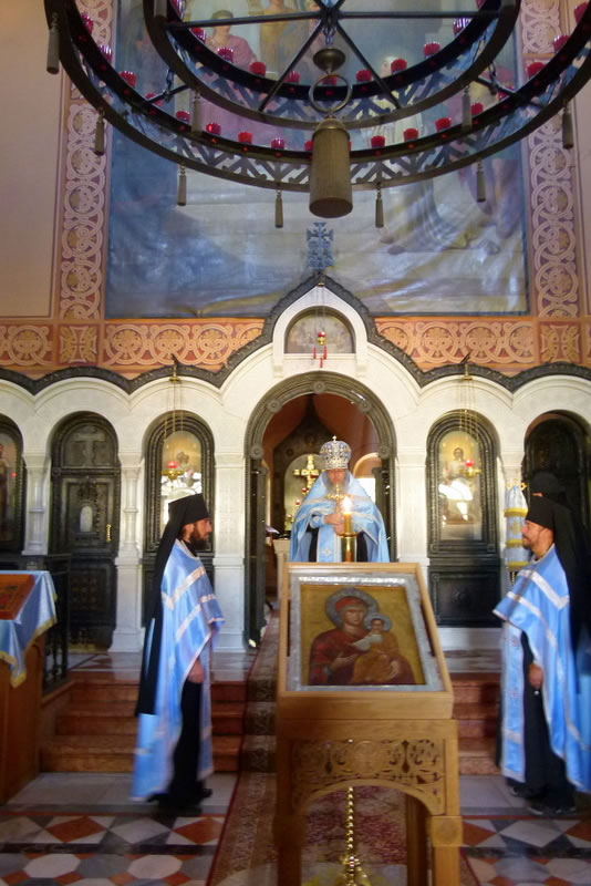 Всенощное бдение и Божественную литургию возглавил Начальник Духовной Миссии Русской Зарубежной Церкви в Иерусалиме архимандрит Роман (Красовский). Ему сослужили клирики миссии иеромонахи Мисаил (Минин) и иеромонах Феодор (Кирикэ), при иеродиаконе Герасиме (Котовском).