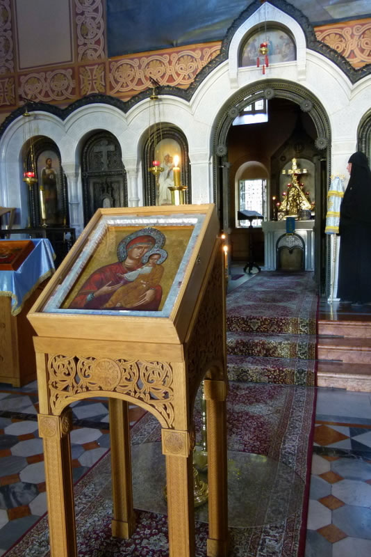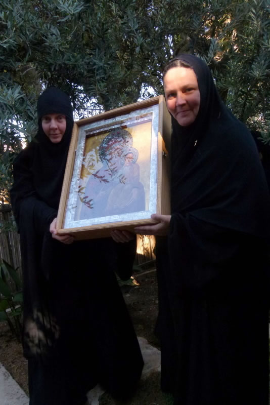 В марте 1939 г. игуменья Мария получает в дар от Ливанского митрополита Илии Карама старинную, византийского письма, икону Божией Матери «Одигитрия». История сей иконы Пресвятой Богородицы ведет свое исчисление от 25 марта 1554 г., так было написано в документе, который прилагался к иконе: «…в 1935 г. жители селения Рехани поднесли ее мне по случаю моей хиротонии во епископа Ливанского… В настоящий момент мы - законный владелец сего великого и святого сокровища, удостоверяем, что сию святую икону мы передаем в дар всечестной матери Игумении Марии. Содержание сего документа подтверждаем своей митрополичьей печатью». Вскоре, темная, почти черная икона самообновилась, стала мироточить и притекающие к ней с верой и молитвой начали получать исцеления. Праздник иконы Гефсиманской Одигитрии отмечается 27 июля/10 августа.
