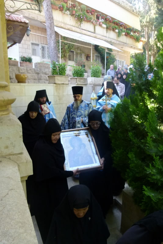 По традиции святую икону крестным ходом обносят по всей территории Русской Гефсимании, а затем перевозят в Вифанию, где также совершается торжественный молебен с крестным ходом.