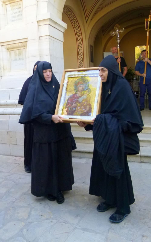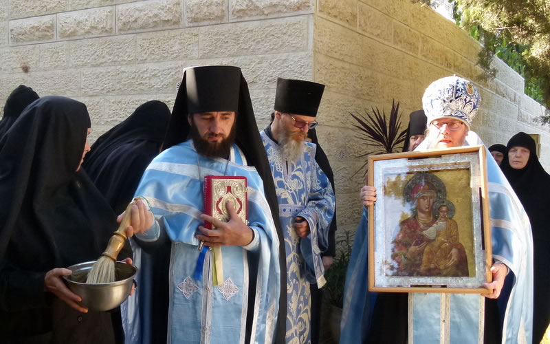 В день празднования Смоленской иконы Божией Матери "Одигитрия" в русском женском монастыре равноапостольной Марии Магдалины в Гефсимании после Божественной литургии состоялся традиционный крестный ход с почитаемым в обители чудотворным образом Божией Матери.