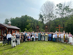 В этом году торжества по случаю престольного праздника в приходе во имя чудотворного образа Божией Матери «Смоленския» продолжались два дня, начавшись еще 9 августа, в воскресенье. В этот день Божественную Литургию возглавил настоятель Свято-Троицкого собора (Торонто, Онт.), благочинный на Восточную Канаду, митрофорный протоиерей Владимир Мальченко, в сослужении протодиакона Александра Морина (Св.-Троицкий собор, Торонто, Онт.). По окончании Литургии состоялся крестный ход вокруг храма с чтением Евангелия и окроплением святой водой, после чего была торжественно открыта и освящена бронзовая мемориальная табличка, установленная на часовне-памятнике в честь Св. Царственных Страстотерпцев. После службы все гости, впервые за последние два года, были приглашены на праздничный концерт и приготовленный Сестричеством храма на свежем воздухе пикник. На празднике присутствовали Генеральный Консул РФ в г. Торонто К. С. Михайлов, а также давний друг прихода, протоиерей Антоний Фильчак (Болгарская Православная Церковь в Канаде). Собственно праздничные богослужения возглавил настоятель о. Максим Аброскин. Лития на Всенощном бдении была совершена под открытым небом перед входом в Смоленский храм. За богослужением благолепно пел хор под руководством регента храма — чтеца Григория Монтана. К празднику храм был украшен живыми цветами. Несмотря на рабочий день на Престольный праздник собрались многочисленные прихожане, и многие из них удостоились причаститься Святых Христовых Таин. Очень радостно, что в этом году, по милости Божией, в связи с постепенной отменой ограничений, связанных с пандемией, прихожане и гости могли свободно посетить праздничные службы.