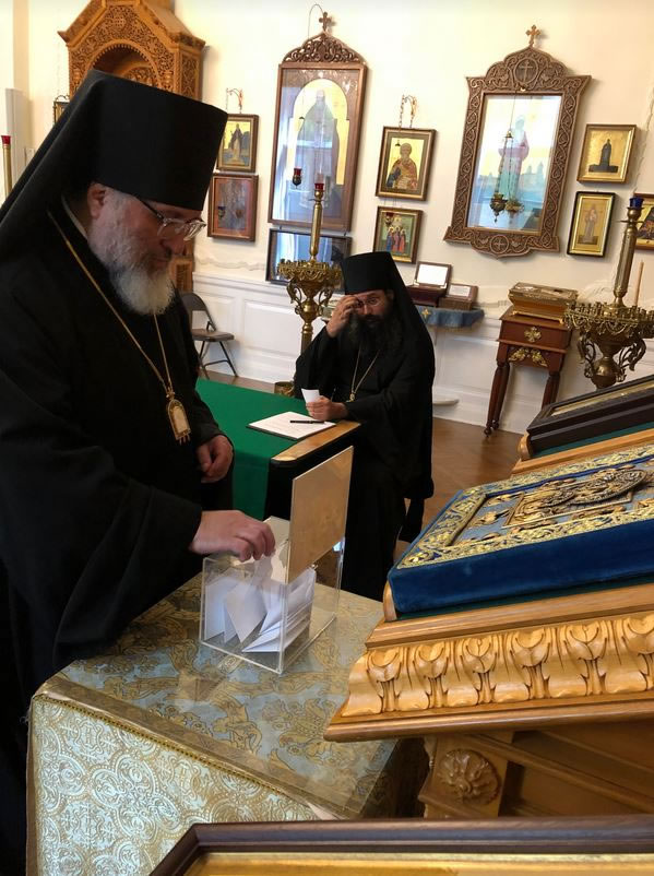 После трапезы в большом зале заседаний Синодальной резиденции состоялось открытие Архиерейского Собора. После вступительного слова Высокопреосвященнейшего владыки Марка товарищем председателя был избран архиепископ Сан-Францисский и Западно-Американский Кирилл, секретарями Собора – епископы Манхэттенский Николай, Сиэттлийский Феодосий и Штутгартский Иов. Членами Счетной комиссии Архиерейского Собора стали епископ Лондонский и Западно-Европейский Ириней и епископ Сиракузский Лука. Затем архипастыри проследовали в Знаменский собор для избрания нового Первоиерарха Русской Зарубежной Церкви, которым стал епископ Манхэттенский Николай. Услышав результаты второго тура голосования архипастыри возгласили «аксиос» своему собрату, были провозглашены ектенья о «господине нашем Преосвященнейшем епископе Николае, избранном Первоиерарсе Русския Зарубежныя Церкве» и многолетствие.