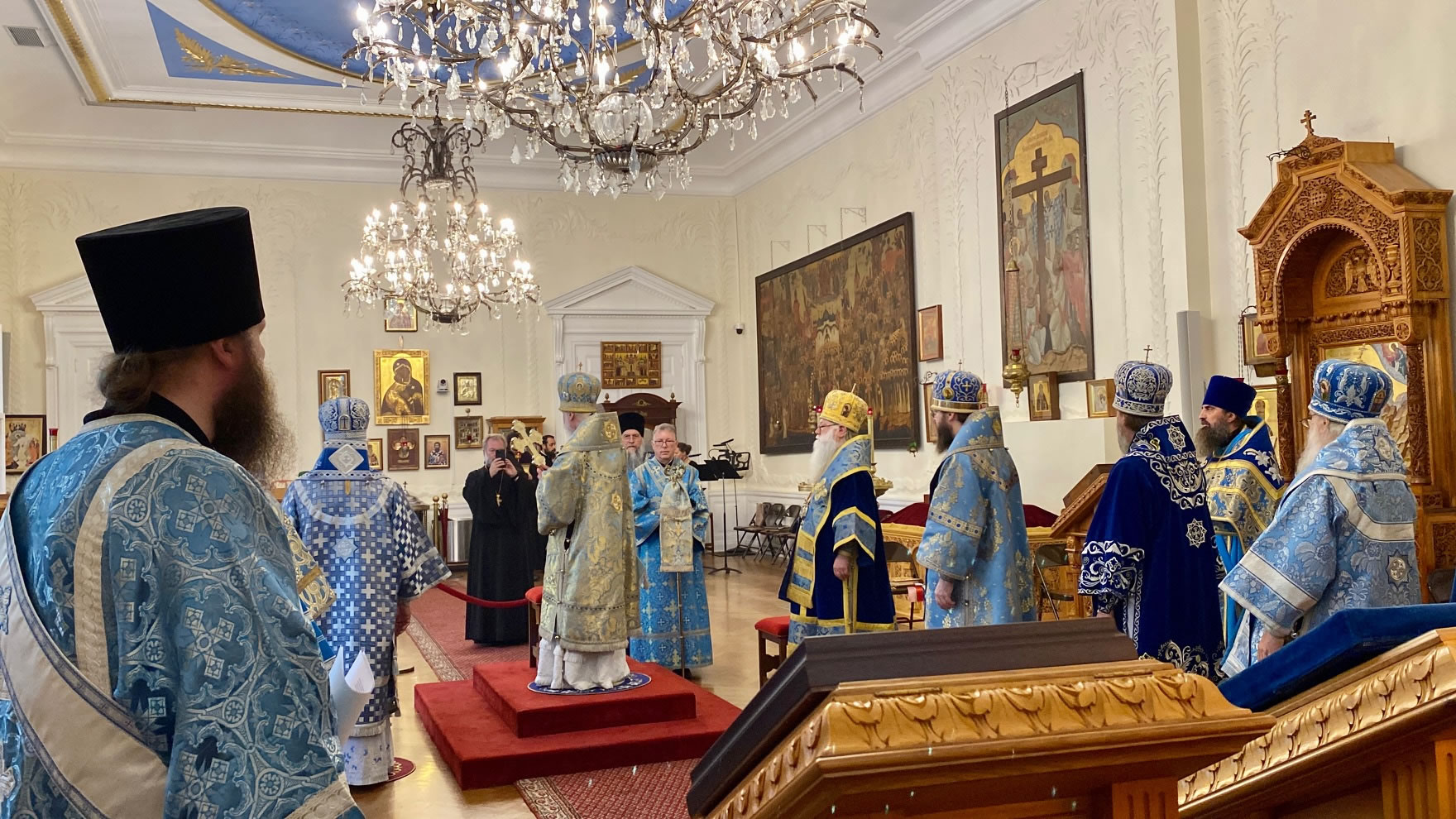 Во вторник, 13 сентября, Преосвященные члены Архиерейского Собора Русской Зарубежной Церкви во главе с митрополитом Берлинским и Германским Марком совершили в Знаменском соборе Нью-Йорка Божественную литургию. По окончании богослужения архипастыри совершили молебен на открытие Архиерейского Собора, призвав благодатную помощь Святого Духа в предстоящих деяниях.