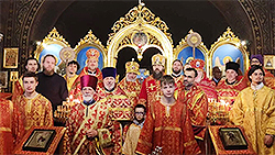 После праздничного бдения в субботу вечером, на котором владыку Александра встретили на ступенях храма, Божественная литургия соединила празднование воскресного дня со священной памятью небесной покровительницы прихода.