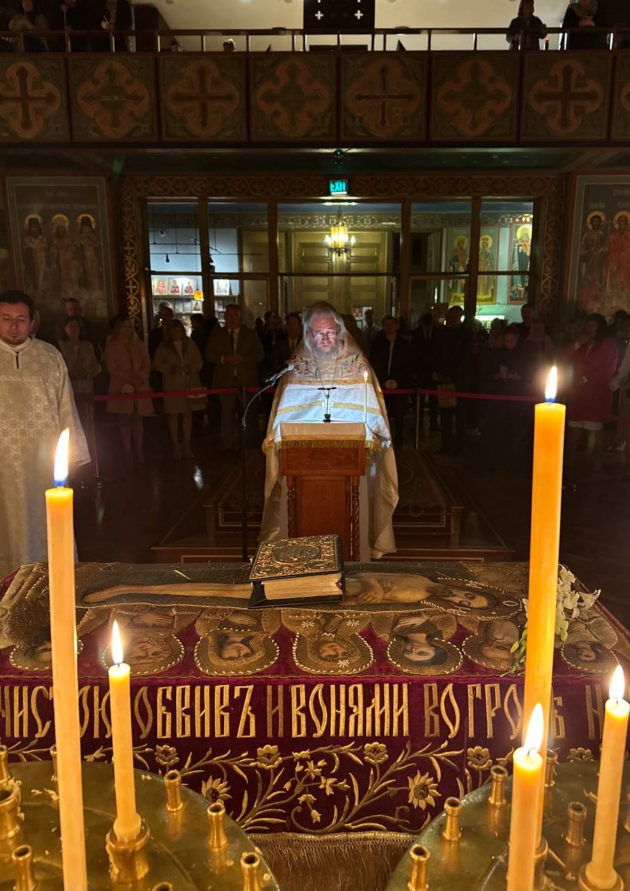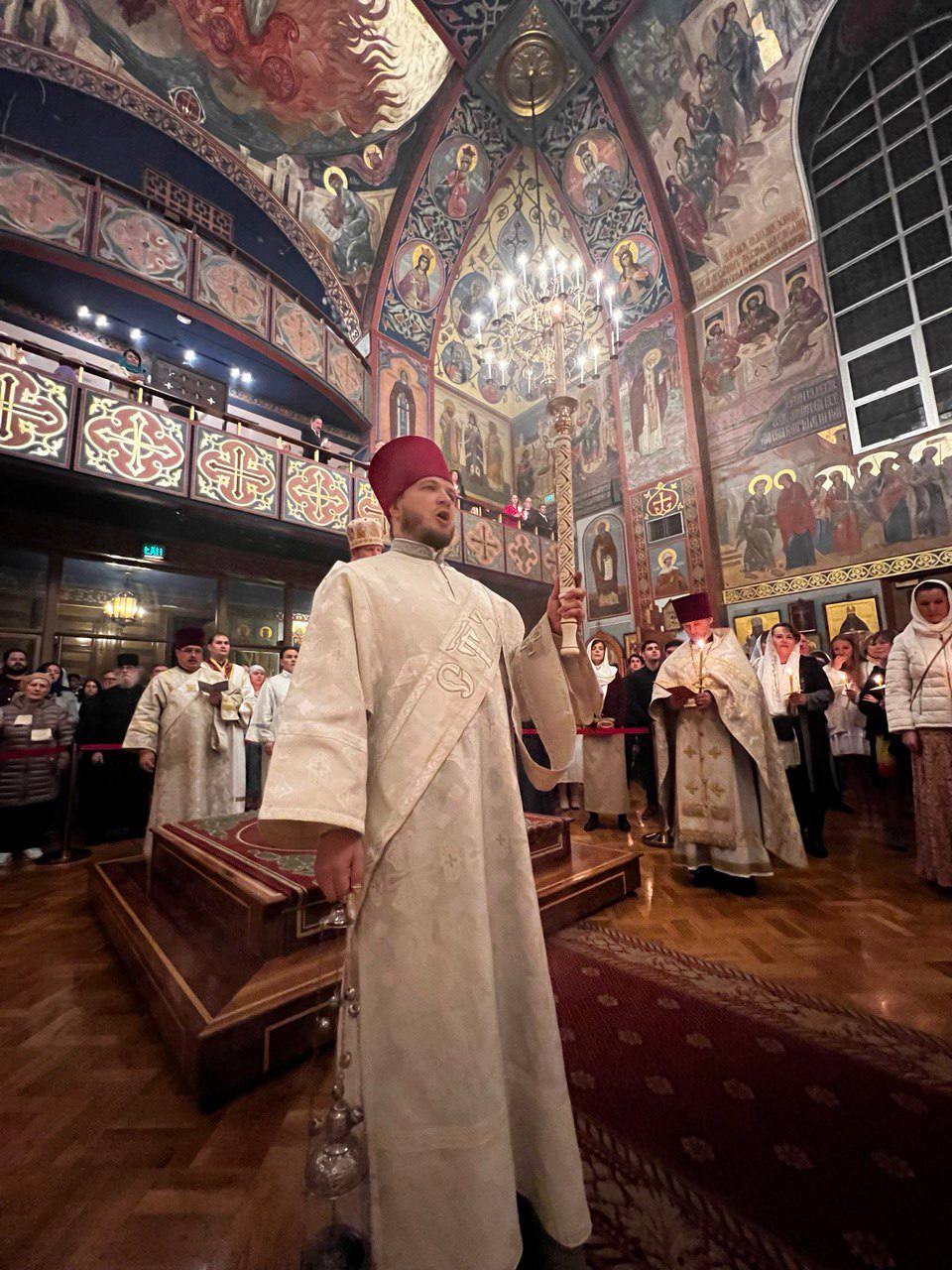 Его Высокопреосвященству сослужило духовенство собора. Песнопения исполнил архиерейский хор под управлением Владимира Красовского, а также хор под управлением Джона Баффа.