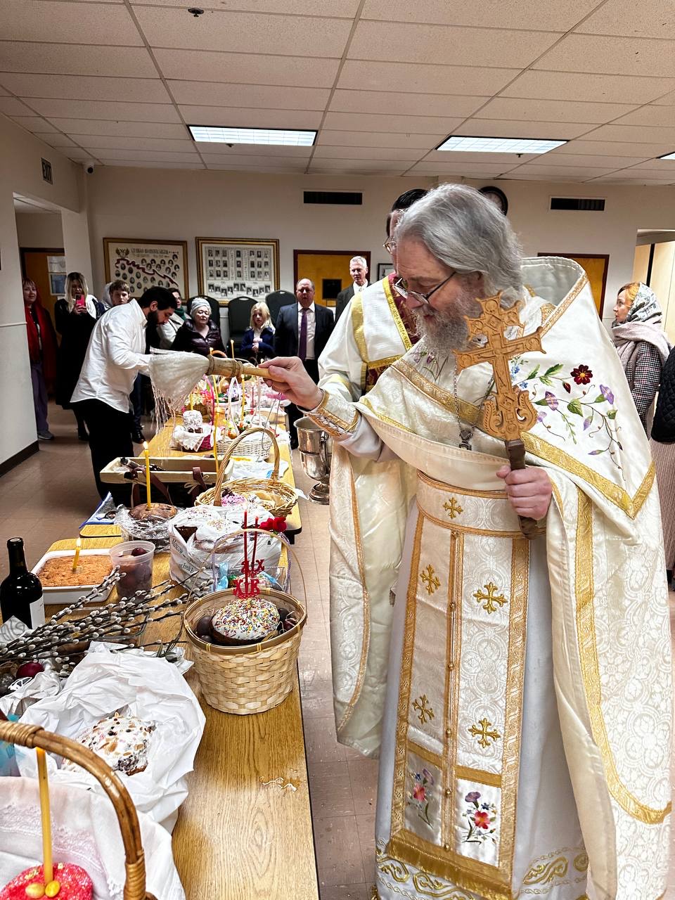 После заамвонной молитвы владыка Кирилл освятил артос и поздравил верующих с Пасхой.