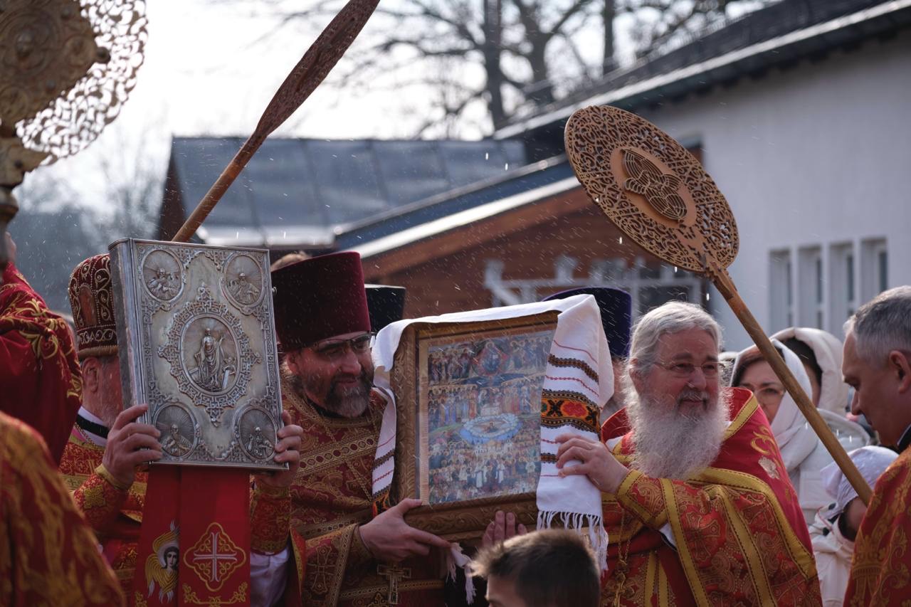 По окончании Божественной литургии был совершен молебен с крестным ходом вокруг соборного храма и чтением молитвы святым, составленной приснопамятным архиепископом Антонием (Медведевым), автором службы святым новомученикам и исповедникам, принятой Архиерейским Собором 1981 года.