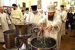 По окончании Литургии Его Высокопреосвященство поздравил всех с великим праздником Богоявления. Затем митрополит Николай совершил великое освящение воды и призвал с благоговением хранить и принимать святую воду.