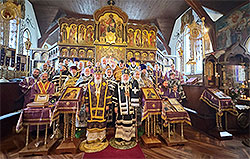 В среду, 18 марта, была совершена Литургия Преждеосвященных Даров. Высокопреосвященнейшему архиепископу Гавриилу и Преосвященнейшему епископу Спиридону сослужил сонм клириков, при девяти протодиаконах и диаконах, прибывших со всех концов Канадской епархии.
