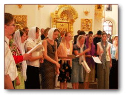 Бывает Божественная литургия под открытым небом (в Новом Павловске построена прекрасная часовня), в Калифорнии уже есть проект постоянной часовни. Накануне бывают беседы об исповеди, о богослужении. Ребята и большинство руководителей исповедуются и причащаются.