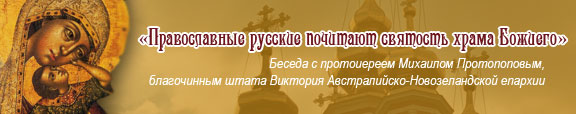 Мы, православные русские, глубоко почитаем святость храма Божиего и неприкосновенность церкви. Как мне кажется, к моему сожалению, в Англиканской Церкви все меньше и меньше людей понимает это. Сейчас инославные продают свои храмы даже под ночные клубы, рестораны, бары и другие неприличные светские заведения. В Мельбурне есть дорогой ресторан под названием «Часовня на Часовне» (Chapel on Chapel). И это действительно бывшая англиканская часовня, которая располагается на улице Часовни (Chapel Street) в пригороде South Yarra. Были случаи, когда англикане, католики или протестанты превращали свои прекрасные старинные каменные соборы в жилые дома и квартиры и даже театры.