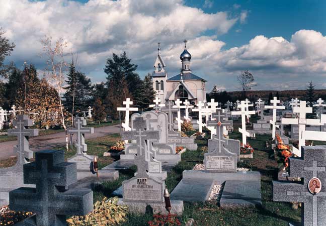 The main holy object of the Monastery is the copy of the Pochaev Icon of the Mother of God. In the cemetery are buried Metropolitans Anastassy and Philaret of blessed memory, Archbishops Tikhon (Troitsky), Appolinarii, Averkii (Taushev), Anthony (Medvedev), Hegumen Filimon of Valaam, the icon-painter Archimandrite Kyprian and the murdered protector of the Myrrh-Streaming Iveron Icon of the Mother of God, brother Joseph. The Holy Trinity Monastery is in fact the residence of the present First Hierarch of the Russian Orthodox Church Outside of Russia, Metropolitan Laurus.