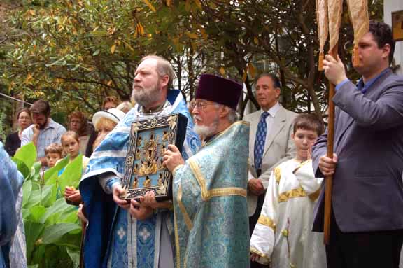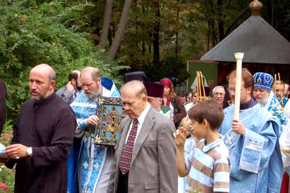The Kursk-Root Hermitage Celebrates its Feast Day Sunday, September 24, was the feast day of the Kursk-Root Hermitage, celebrated on the Nativity of the Mother of God. Officiating at the open-air services at the chapel was Vicar Bishop of the Diocese of Eastern America and New York, His Grace Bishop Gabriel of Manhattan, who, to the great joy of the worshipers, brought the Kursk-Root Icon of the Mother of God "of the Sign." His Grace was joined by Protopriest Wsewolod Dutikow; Protopriest Alexander Donchenko; Priest Ilya Gun; Priest Alexander Botschagow; Priest Vadim Arefiev; Hieromonk Tikhon; and Hieromonk Evtikhii; along with Deacon Vladimir Tsurikov and Deacon Vladimir Oliynik.