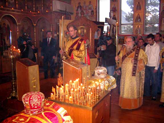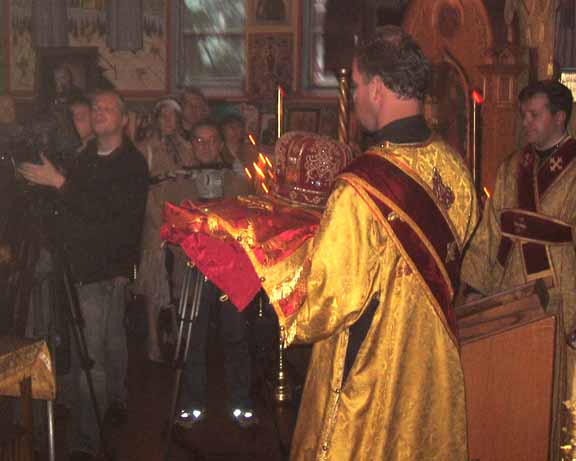 "Today, in our church, Fr Roman will hand over, through Archimandrite Tikhon, Prior of Sretensky Monastery in Moscow, the vestments of that First Hierarch who glorified the New Martyrs abroad to that First Hierarch who glorified them in Russia.