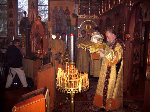 The Staff and Vestments of Metropolitan Philaret of Blessed Memory Are Sent to Moscow On Sunday, November 12, with the blessing of His Eminence Metropolitan Laurus, First Hierarch of the Russian Orthodox Church Outside of Russia, in fulfillment of the wishes of Metropolitan Philaret (Voznesensky, +1985) of blessed memory, and the will of his cell-attendant, Protodeacon Nikita Chakiroff, Mitred Protopriest Roman Lukianov, Rector of Epiphany Church in Roslindale, MA (near Boston), handed over the staff and vestments of the third First Hierarch of the Church Abroad to His Holiness Patriarch Alexy of Moscow and All Russia during a very ceremonious service. Fr Roman would have traveled to Russia himself but could not due to illness. Therefore, praying during Divine Liturgy, which was performed by Priest Victor Boldewskul, Deputy Rector of the parish, along with the other clergymen of the church, was Archimandrite Tikhon (Shevkunov), Rector of Sretensky Stavropighial Monastery in Moscow, sent there by the Patriarch. At the end of Liturgy, Fr Victor addressed the multitude of worshipers with the following words of edification:
