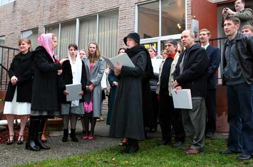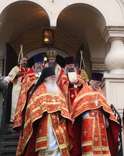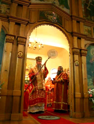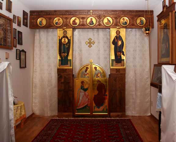 After Divine Liturgy, a procession of the cross went to the parish hall, where 40 years ago, St John of Shanghai and San Francisco died. At the time of his repose, he was holding the Kursk-Root Icon of the Mother of God. A chapel was established in this room. The holy bishop's cassock is displayed here in a special frame. In celebration of the fortieth anniversary of St John's death, St Nicholas Cathedral commissioned an iconostasis to be made in Belarus, which was delivered just days before the Cathedral feast day. The parishioners erected it on the eve of the holiday, where it was later consecrated by His Eminence Archbishop Kyrill. The site of the death of St John is a holy place not only for the parishioners of St Nicholas and the rest of the Diocese, but for all those who honor the memory of the great ugodnik (pleaser) of God, St John.