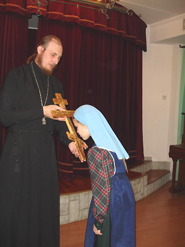 All of our orphan girls and colleagues venerated the cross-reliquary with great reverence. This reliquary contains holy things dear to all believing hearts—portions of the holy earth and stones. Reading their names, one immerses oneself into Holy Scripture—Bethlehem, the Jordan River, Mount Zion and Temptation Mount, Magdala and Tabor, Gethsemane and Golgotha. The girls then gleefully enjoyed the artwork of the Gethsemane nuns—light, airy, luminous—and hung them over their beds. In one there is a silvery garden with old olive trees, in another, the Abbess' own rendering of a Jerusalem sunset. In this way, St Elizaveta tied our little orphanage with her beloved Holy Land.