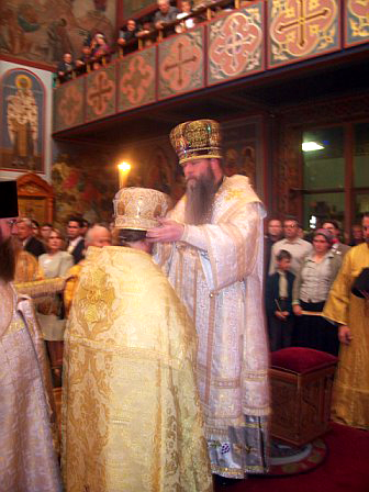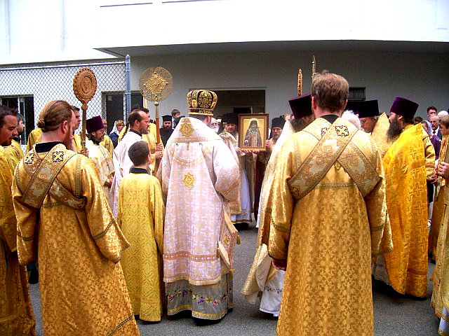 The clergymen and flock of the Diocese of San Francisco and Western America marked the 40 th anniversary of the repose of St John of Shanghai and San Francisco with great solemnity and inspiration with a Divine Liturgy, at which His Eminence Archbishop Kyrill officiated along with diocesan and visiting clergymen. During the minor entrance, His Eminence elevated Hegumen Theodosius, Rector of St Tikhon Church at the Diocesan Headquarters and former residence of St John , to the rank of archimandrite, in accordance with a decision of the Synod of Bishops. After the end of Liturgy, a moleben was served along with a procession of the cross, after which the Cathedral Sisterhood offered the clergymen and guests a magnificent trapeza meal.