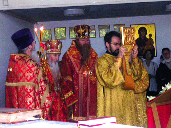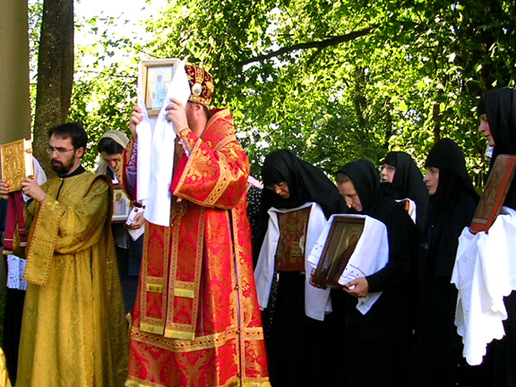 From the Life of the New Convent of the Diocese of Berlin and Germany  On July 18, the Convent of St Elizabeth the Martyr celebrated its first feast day. The solemn all-night vigil was conducted by Protopriest Nikolai Artemoff with Deacon Alexander Rolov. Arriving from Darmstadt in time for the polyeleos was His Grace Bishop Agapit of Stuttgart. The next day, the spiritual father of the Convent was greeted before Liturgy—His Eminence Archbishop Mark. The spirit of the Resurrected Christ, fittingly for the memory of Holy Grand Duchess Elizabeth, reigned at her Convent. The church was adorned in red vestments and red Paschal candles burned throughout the church; it was all reminiscent of a little Pascha. After Divine Liturgy, there was a procession of the cross around the Convent. Afterwards, the nuns invited all the pilgrims to a festive trapeza, during which Vladyka Mark congratulated the nuns on their first feast day. His Eminence noted that from now on in the German Diocese, women, too, will have a monastic retreat where they can draw strength and spiritual edification, sadly lacking until now. Women pilgrims can now visit the new convent and combine monastic labors with prayer, attending the daily services.