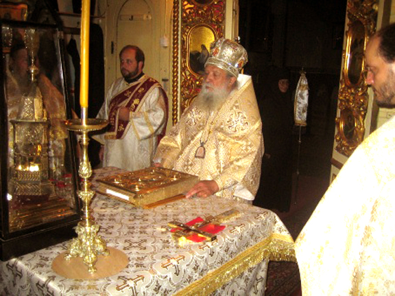 Bidding farewell to Archimandrite Hilarion, His Eminence then departed for Jerusalem, to the Convent of St Mary Magdalene in Gethsemane, where he prayed in the altar during all-night vigil.