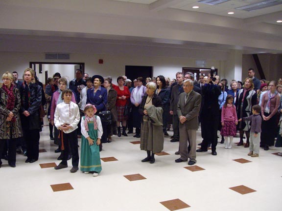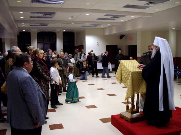 On November 6, 2007, St Nicholas Cathedral in Montreal celebrated the completion of the lower floor of the church building, which suffered greatly during a fire in 1988. The First Hierarch of the Russian Orthodox Church Outside of Russia, His Eminence Metropolitan Laurus, graced this event with his presence, accompanied by Protodeacon Victor Lochmatov. Many could not hold back tears of joy when they learned that Vladyka Metropolitan was going to share in our celebration. Yet this is only one example of the attention our Primate shows Montreal, the cathedral city of the Eastern American Diocese. So now, despite his overwhelming schedule, His Eminence made the five-hour trip from Holy Trinity Monastery to Eastern Canada. And after a two-hour service at St Nicholas Cathedral, he made the return trip.
