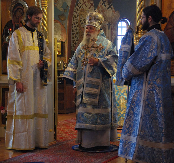 On December 10, Metropolitan Laurus celebrated Divine Liturgy at the Cathedral of Our Lady of the Sign along with the attending members of the Synod of Bishops and Bishop Merkury. During the minor entrance, in accordance with a decision by the Synod of Bishops, Metropolitan Laurus elevated Deacon Serge Arlievsky to the rank of protodeacon. Before the veneration of the cross, His Eminence awarded the Synodal Medal of the Sign of the Second Order to Yuri Iliodorovich Schidlowsky, who recently retired after many years of work as the Executive Director of the Fund for Assistance to the Russian Orthodox Church Outside of Russia. Irene Sergeevna Gan was given a Synodal Gramata [decree of blessing] for her work in organizing the combined Choir of the Russian Church Abroad, which traveled to Russia to participate in the celebration of the signing of the Act of Canonical Communion, as well as organizing the celebration of the 150 th anniversary of the composer AD Kastalsky, and a youth choir which sang at the Synodal Cathedral. Among the worshipers in attendance, in addition to a multitude of parishioners of the Synodal and St Nicholas Cathedrals were SV Garmonin, Consul General of the Russian Federation in New York, as well as pilgrims from the city of Kursk.