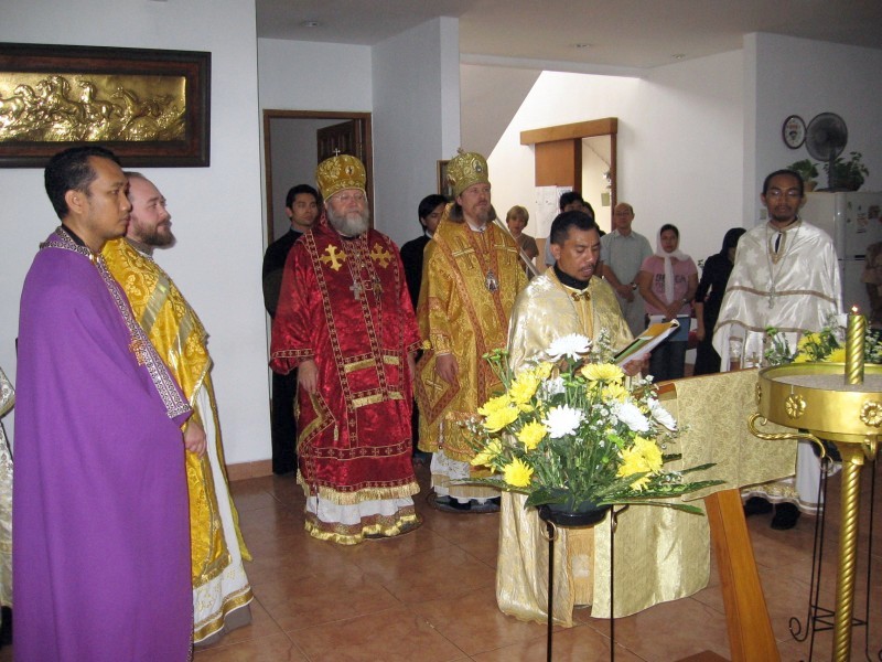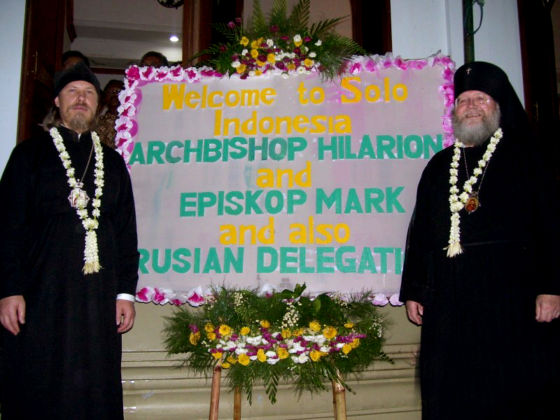 The aim of the visit of His Eminence Archbishop Hilarion to the parishes of the Orthodox Mission in Indonesia was to lend support to the clergymen and laypersons who do missionary work throughout the parishes of the Orthodox Mission in Indonesia, to meet with local authorities on the status of Orthodox Christians in this country and to strengthen the Mission through the ordination of worthy candidates to the priesthood. Archbishop Hilarion was joined by His Grace Bishop Mark of Egoriev and Archimandrite Daniel (Byantoro) and their fellow travelers.