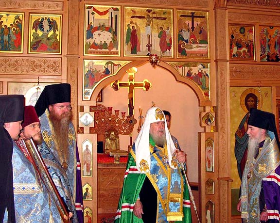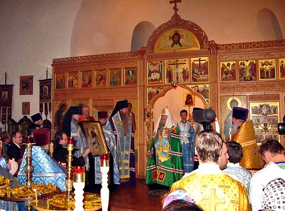 On the evening of November 29, 2007, His Holiness Patriarch Alexy II of Moscow and All Russia, in the presence of a great gathering of Orthodox Christians from throughout Germany, officiated at a moleben and akathist before the Kursk-Root Icon of the Mother of God. The icon was brought from Ireland to Munich and displayed for veneration in the Cathedral of the Holy New Martyrs and Confessors of Russia and Chapel of St Nicholas of the Diocese of Berlin and Germany of the Russian Orthodox Church Outside of Russia. Bishops of the Russian Church Abroad participated in the moleben: His Eminence Archbishop Mark of Berlin and Germany; His Grace Bishop Agapit of Stuttgart; Senior Priest of the Cathedral, Protopriest Nikolai Artemoff; Protopriest Nikolai Zabelich of the Resurrection Parish of the Moscow Patriarchate in Munich; as well as other clergymen and monastics of the Church Abroad and the Moscow Patriarchate, and local priests of the Serbian Orthodox Church.