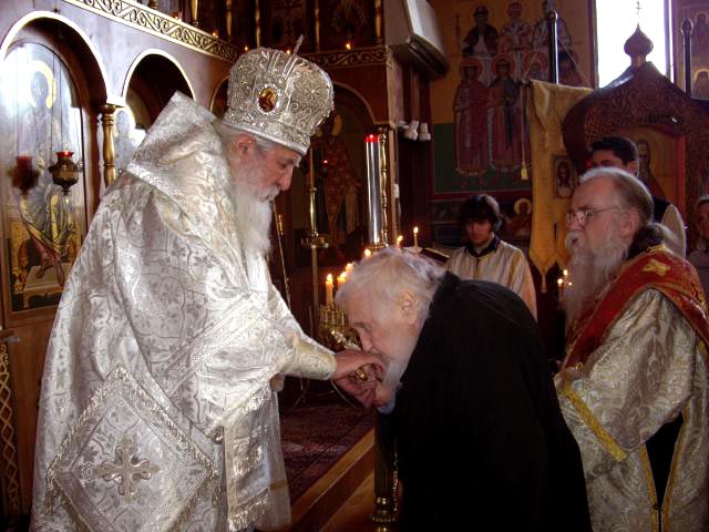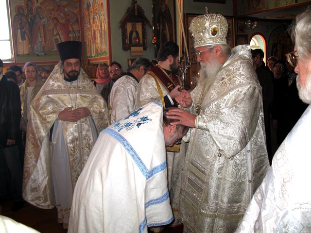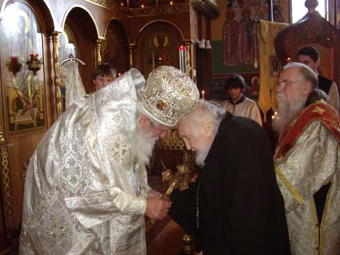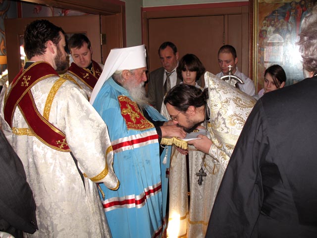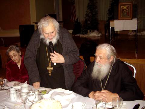 His Eminence Vladyka then elevated Fr Nicholas to the rank of protopriest on this, his twentieth year of service in the priesthood in the Holy Church of Christ. At the end of service, the Primate of the part of the Russian Orthodox Church abroad then expressed his thanks to Fr Roman for his many years of labor in providing pastoral nourishment and insuring the well-being of the life of Epiphany Church, and invoked God's blessing upon him, the new Rector, the clergymen, all the parishioners and worshipers. Fr Roman, although he has been released from his duties in connection with his health, will remain at the parish in an auxiliary capacity.