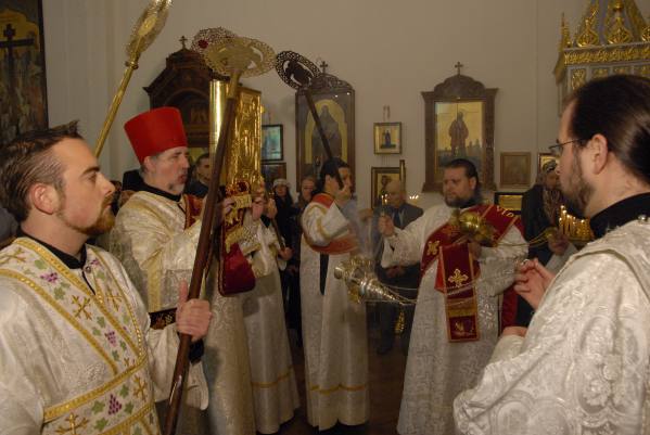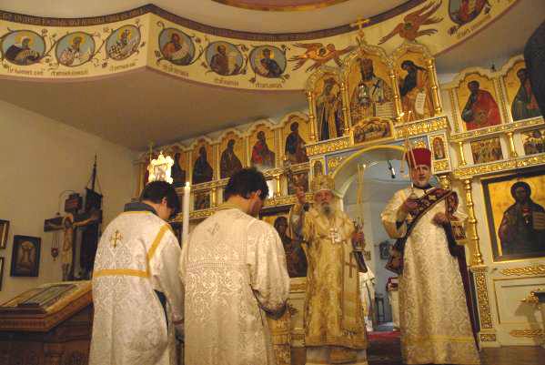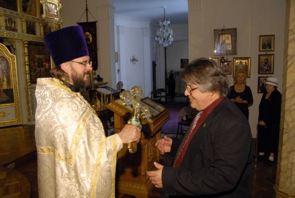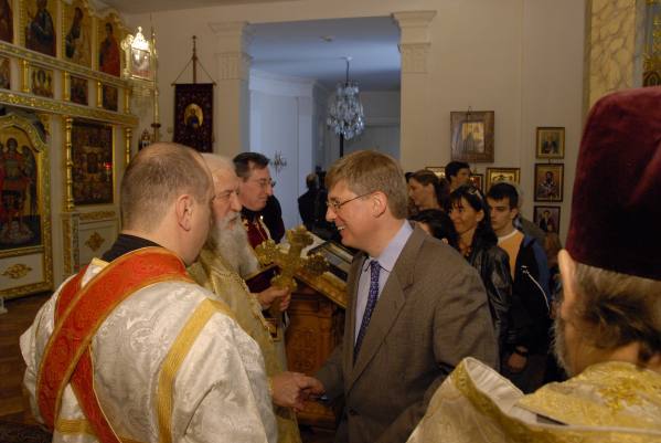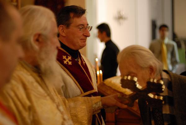 At the end of Divine Liturgy, the Senior Priest of the Cathedral, Protopriest Andrei Sommer, greeted His Eminence, wishing him heavenly assistance in his trip to Russia. In his response, His Eminence Vladyka thanked Fr Andrei for his kind words and asked for everyone's holy prayers.