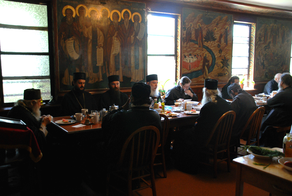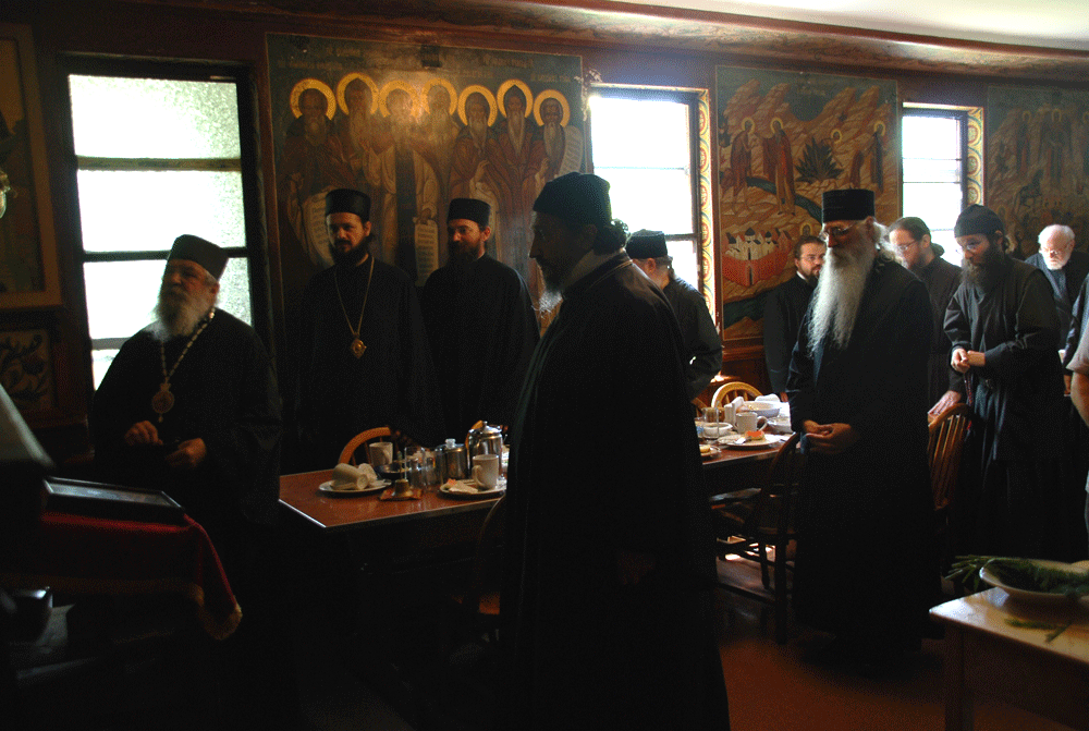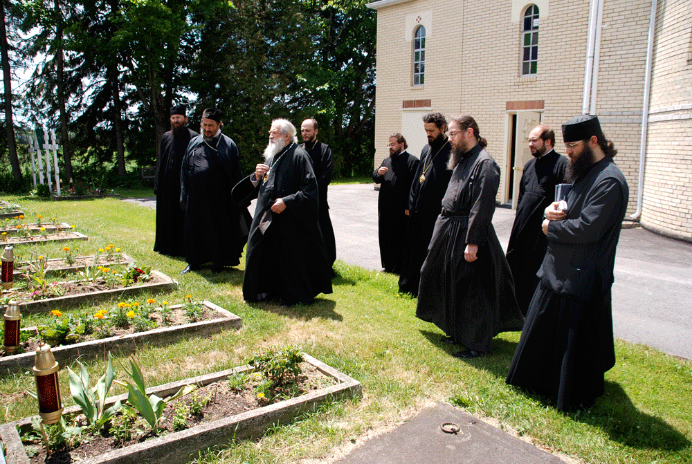 During their discussion with the Primate of the Russian Orthodox Church Outside of Russia, Bishop Afanasije congratulated him on the reestablishment of the fullness of brotherly communion within the one Russian Orthodox Church, and expressed his gratitude to His Eminence for his labors in strengthening Orthodoxy in the world. After the monastic trapeza, His Eminence and Bishop Afanasije jointly prayed at the resting place of Metropolitan Anastassy of blessed memory, Archbishop Averky (Taushev, +1976), Archbishop Anthony (Medvedev, +2000) and other archpastors buried at the monastery.