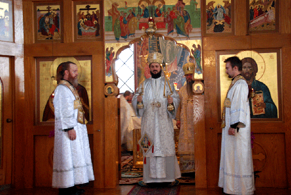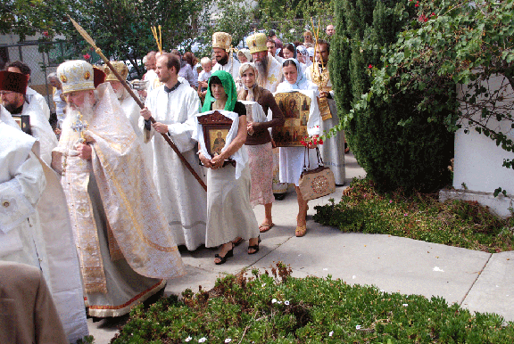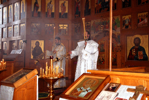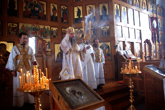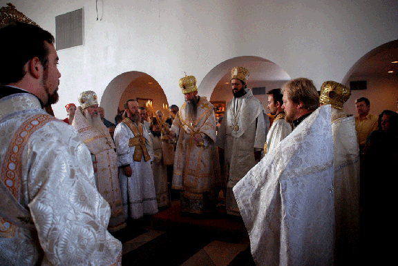 On the feast day of the Transfiguration of the Lord, His Eminence Archbishop Kyrill of San Francisco and Western America celebrated Divine Liturgy at the Cathedral in Los Angeles, along with Bishop Maxim (Serbian Orthodox Church), the Cathedral's Rector, Mitred Protopriest Alexander Lebedeff, the other clergymen of the Cathedral and visiting clerics. During the minor entrance, in accordance with the decision of the Synod of Bishops of the Russian Orthodox Church Outside of Russia, Archbishop Kyrill awarded a second cross to Protopresbyter Konstantin Tivetsky marking the 60 th anniversary of his pastoral service.