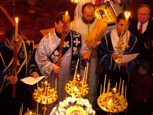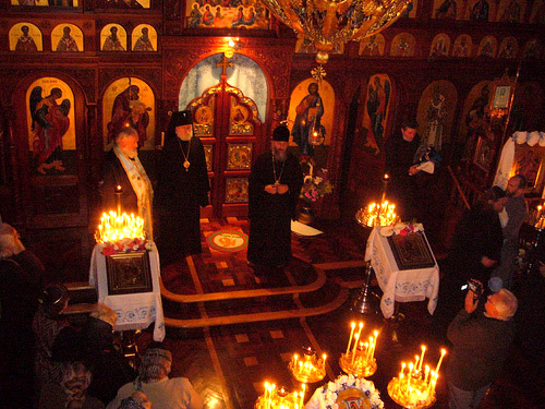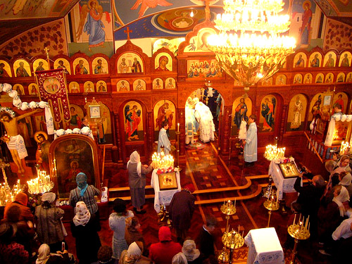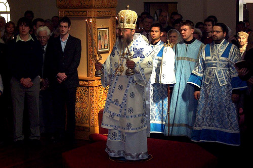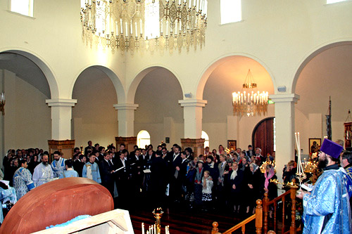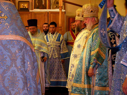 A moleben was then performed before the Icon in the overfilled Protection Cathedral. The following day, the eve of the Nativity of the Mother of God, a solemn all-night vigil was performed at Dormition Church, packed with worshipers, whose Rector is also the local Dean, Mitred Protopriest Michael Protopopoff. On the feast day itself, Divine Liturgy was celebrated at Protection Cathedral. The divine services were grand, prayerful and attended by a multitude of people. Thousands of worshipers were able to venerate the great "Reigning" Icon of the Mother of God.