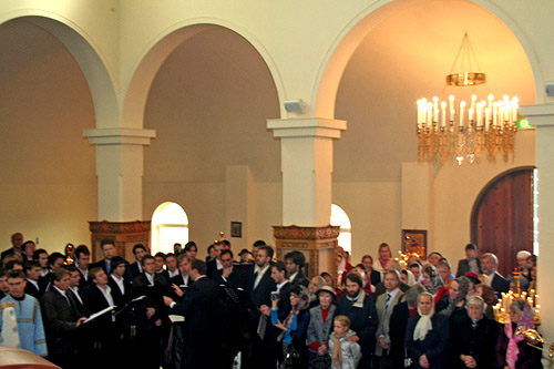 "Allow me, on behalf of our Church Music Committee, on behalf of all the singers of the Diocese and from me personally to express our welcome and gratitude to all the participants of today's celebrations on Australian soil. These celebrations bear witness to the reestablishment of the unity of the Moscow Patriarchate and the Russian Orthodox Church Outside of Russia. After many decades of division and alienation, the Lord granted us the opportunity to perform joint services in prayerful unity and commune of one Eucharistic Chalice, becoming witnesses of love and peace towards which the Lord God calls us, for the benefit of all Orthodox Christians.