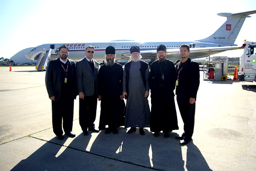 On September 19, 2007, the members of the official delegation of the Moscow Patriarchate and the singers of Sretensky Monastery Choir, accompanying the "Reigning" Icon of the Mother of God, arrived in Melbourne, Australia. They were welcomed at the airport by the Rector of Holy Protection Church, Protopriest Nikolai Karipoff and the Chairman of the Music Committee of the Diocese of Sydney, Australia and New Zealand, NN Kovalenko, who greeted the guests with the following words: