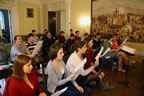 After divine services, Protopriest Andrei Sommer read an epistle of His Eminence Metropolitan Hilarion addressed to the participants of the symposium. Fr Andrei gave Bishop Merkury an icon of St John in memory of the occasion, saying that the members of the gathering are mostly now the third generation of Russians, who try to preserve the language, culture and faith of their ancestors far from the borders of their historic Homeland, and they live in the Russian spirit. And whoever they are to become in life—pastors, diplomats, businessmen, some would spiritually nurture Orthodox Christians outside of Russia, others would serve the Fatherland and people in their lay lives, preserving and strengthening the bonds between Russia and Russians abroad.
